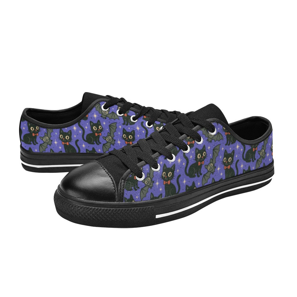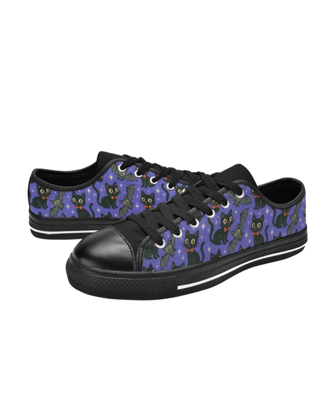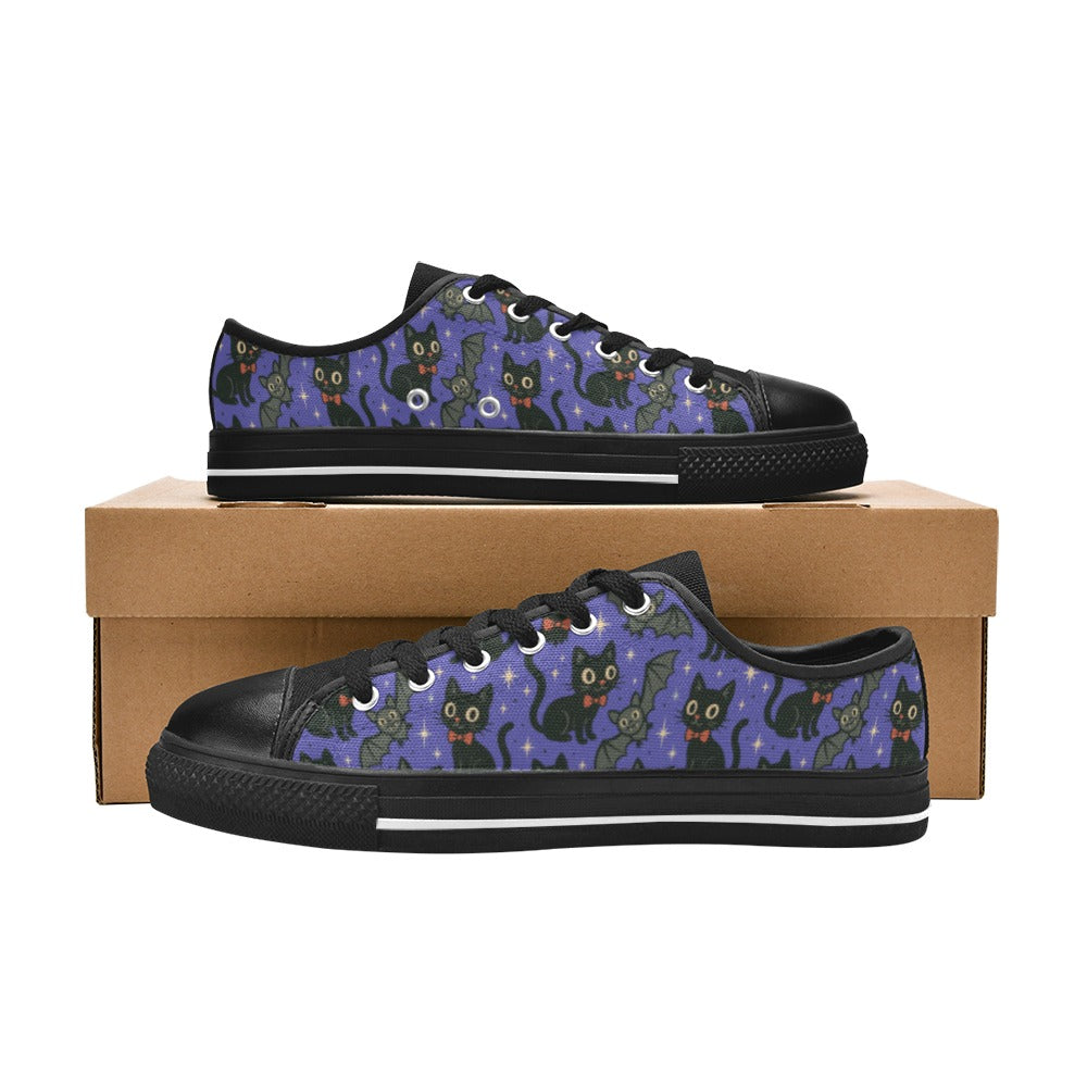 Let your little one step into spooky-cute style with our Spooky Cats n Bats Kids Sneakers(B)! Featuring playful black cats with bow ties, wide-eyed bats, and a purple starry sky, these comfy canvas sneakers add a dash of Halloween charm to everyday outfits.