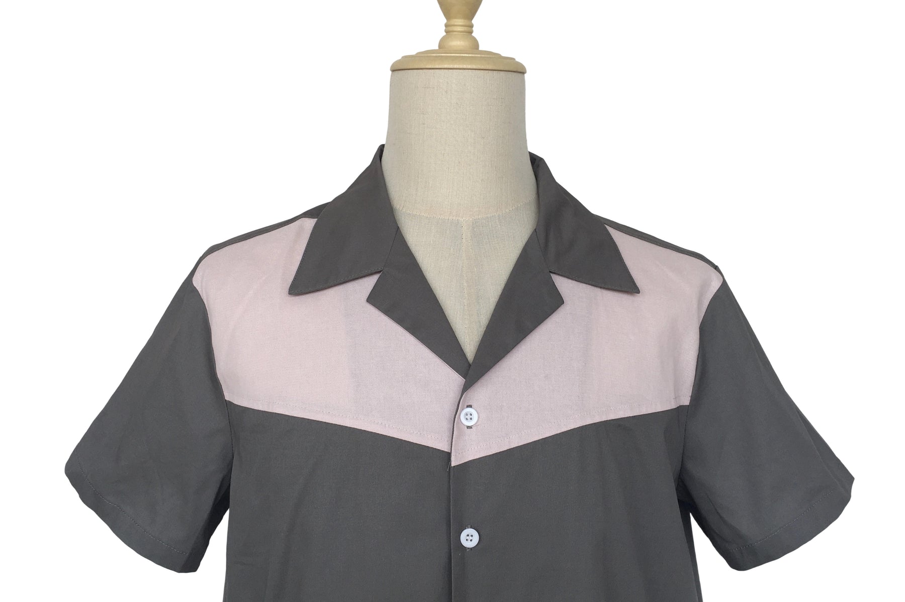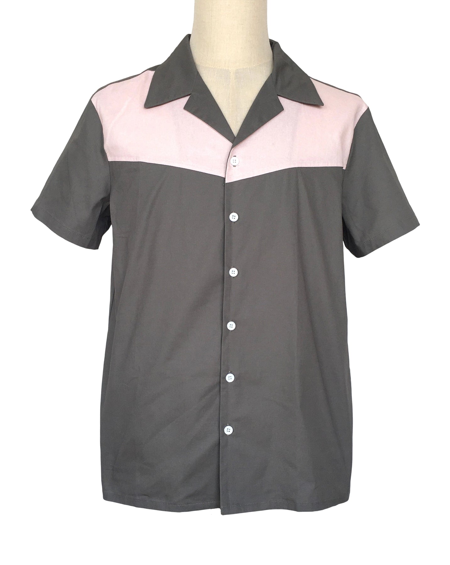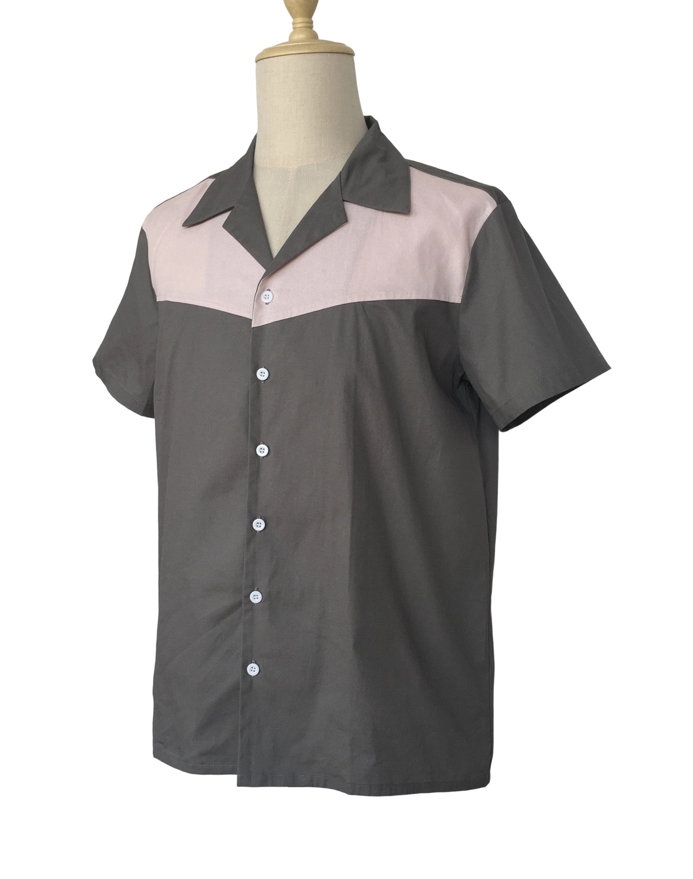 Mens Vintage Style Bowling Dress Shirt - Grey/Pink