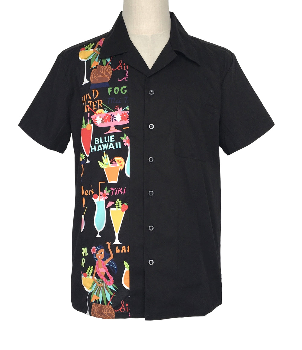 Mens Vintage Style Bowling Dress Shirt - Black Red Panels