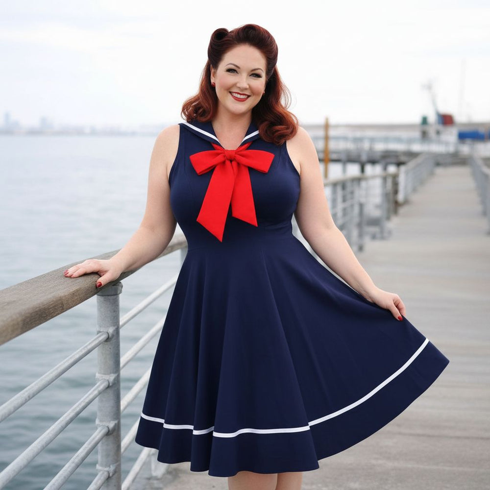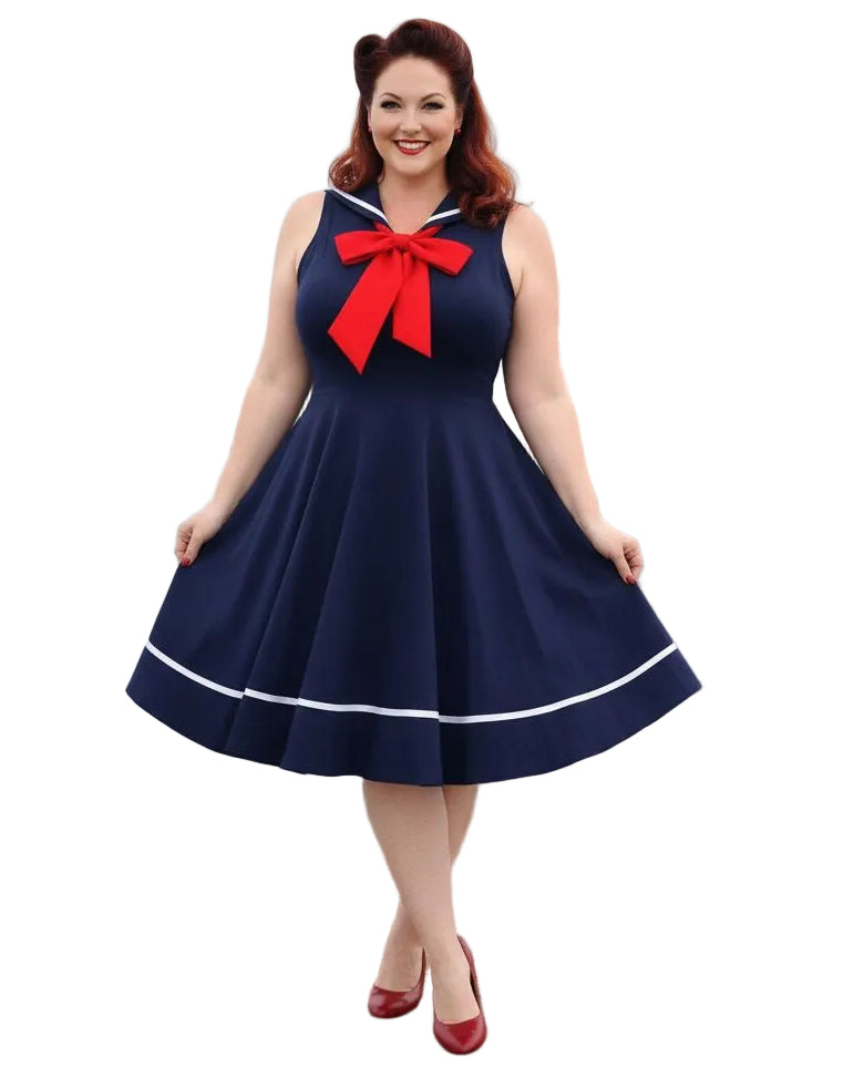 Navy Sailor Bow Fit & Flare Dress β Vintage Inspired (Sβ2XL)
