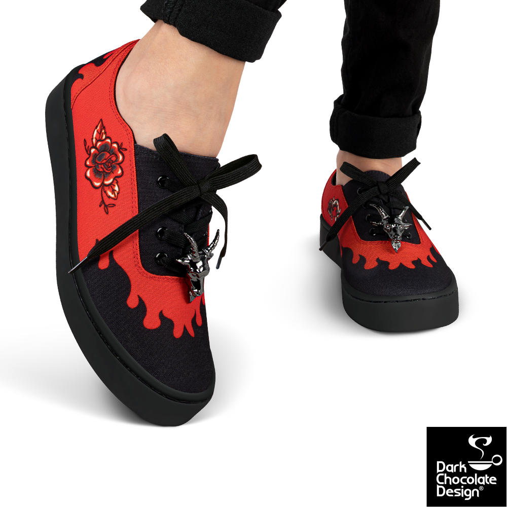 Step into the wild side of comfort with the Dark West Sneakers! Featuring an edgy western-inspired print with classic Hot Chocolate Design flair, these kicks are made for those who love to stand out while staying comfy all day long.