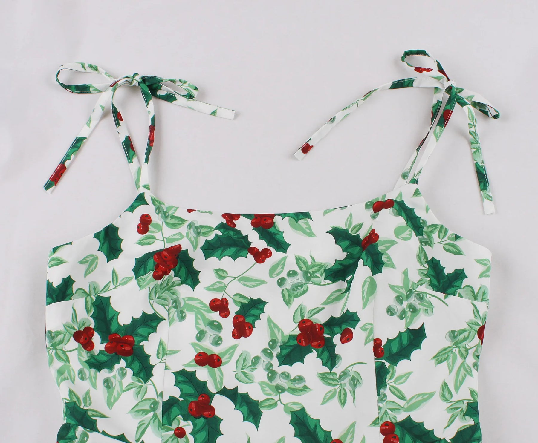 Our Vintage-Inspired Ladies’ Christmas Dress is the perfect mix of festive flair and flattering design. With its pleated A-line silhouette, playful bow detail, and flattering neckline with spaghetti straps, this dress is designed for women who love to stand out at every holiday gathering.