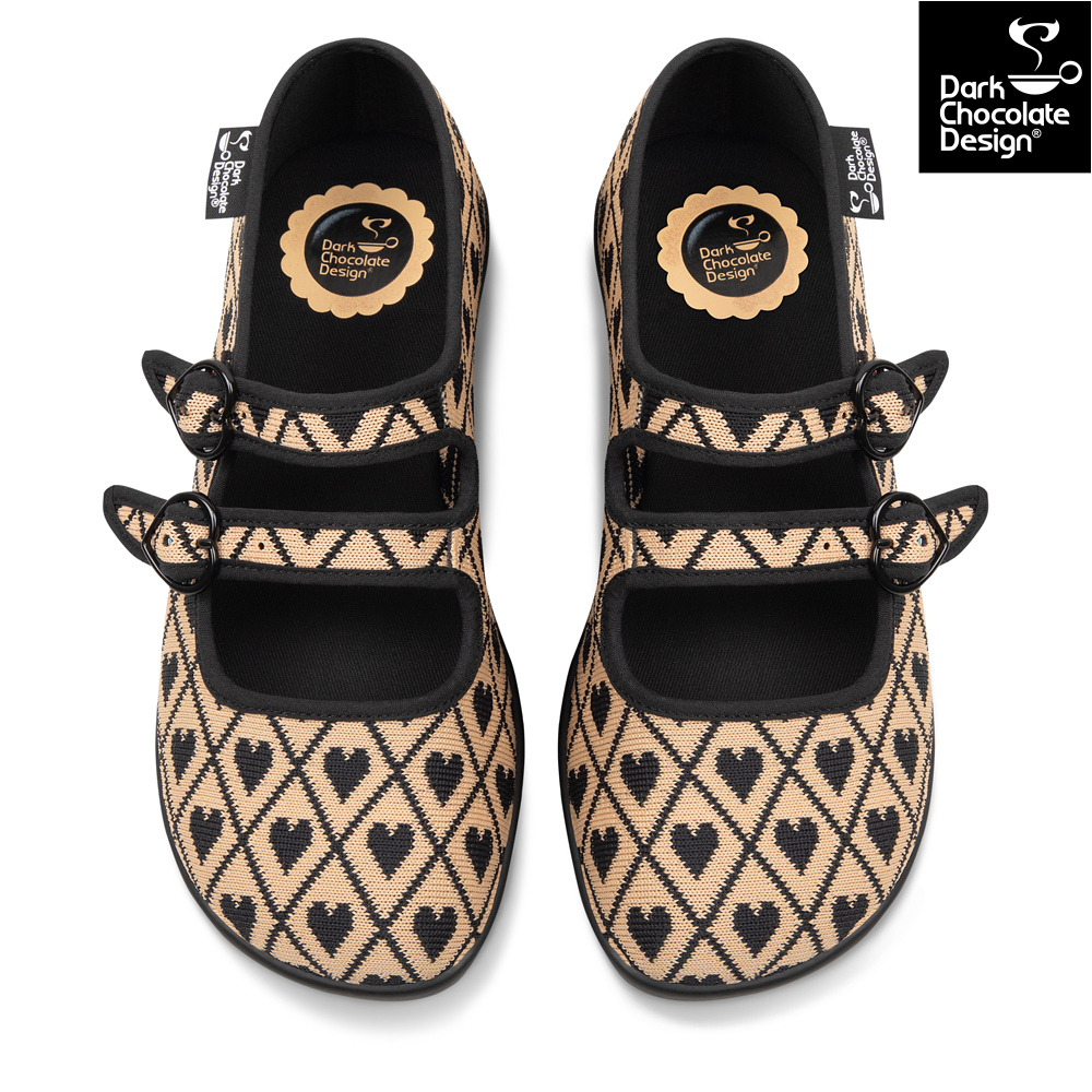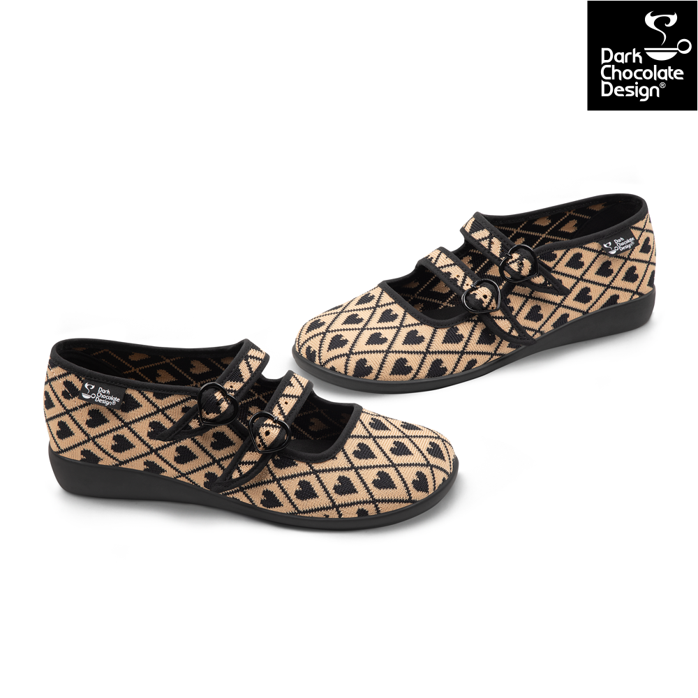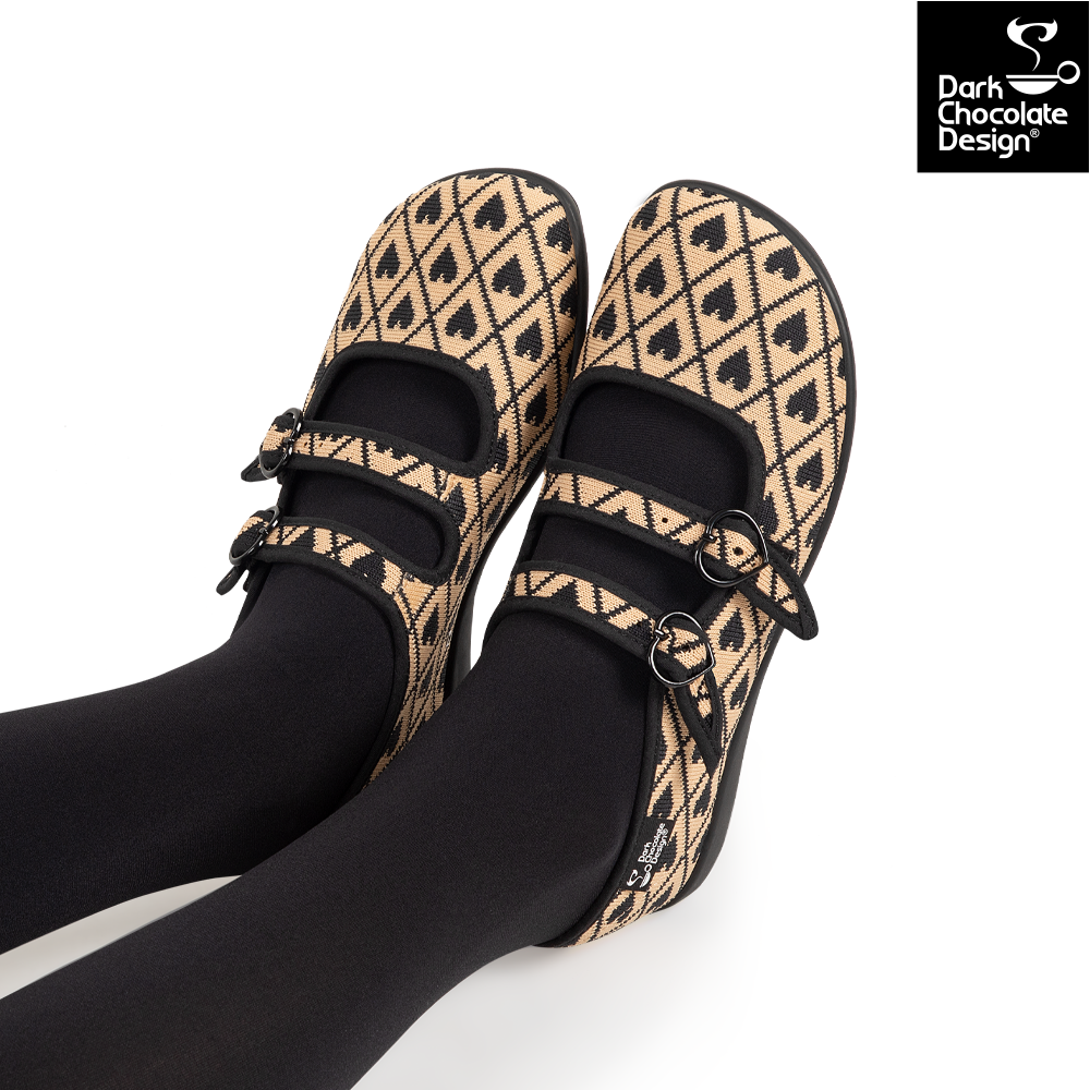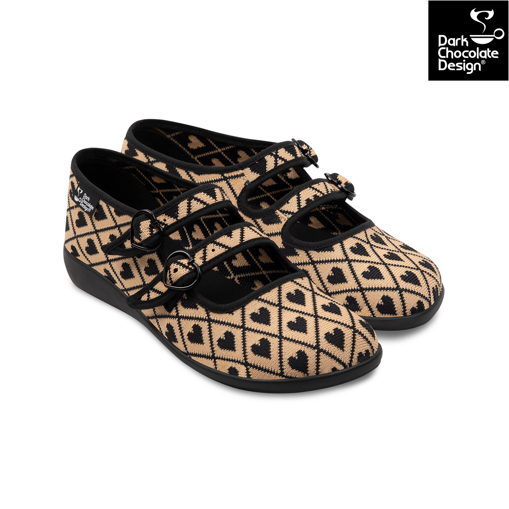 Soft, sophisticated, and a little bit special — the Hot Chocolate Design I Wove You 2 Chocolaticas are a stunning recolour of a beloved past design. Featuring a woven-look heart pattern in warm beige and black tones, these triple-strap Mary Janes are an elegant addition to any collection. Crafted from textured vegan materials with signature comfort and charm, they’re both timeless and playful.